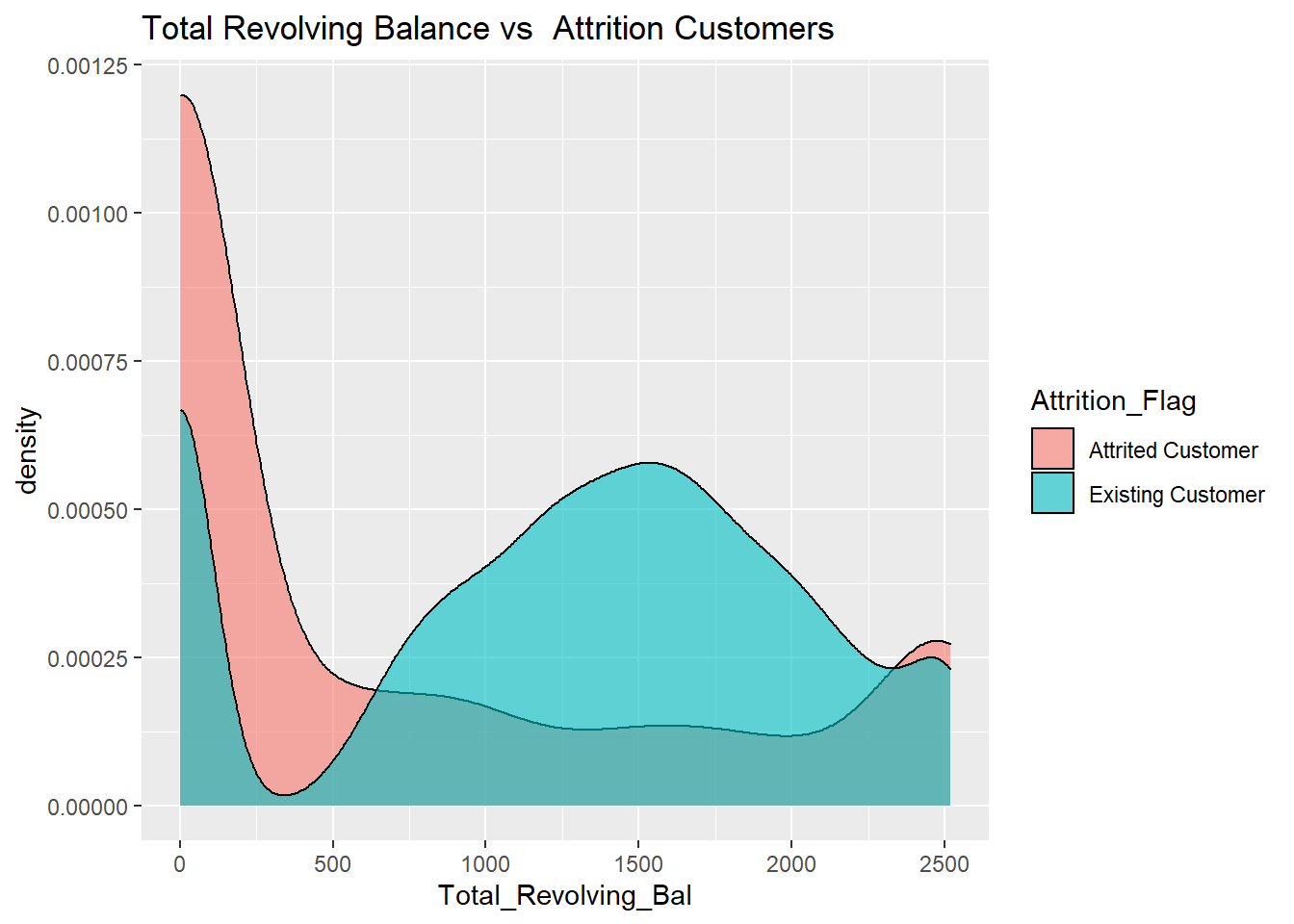 f2 <- BankChurners %>% ggplot(aes(x=Total_Revolving_Bal,fill=Attrition_Flag)) +